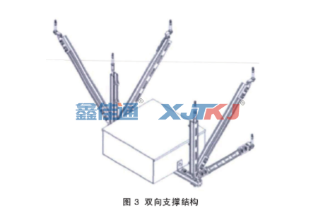 綜合了側向支撐和縱向支撐兩種支撐形式特點的支撐結構即為雙向支撐結構,又稱四向支架(圖 3),一般適用于機電管線較多、支架承重較大的情況