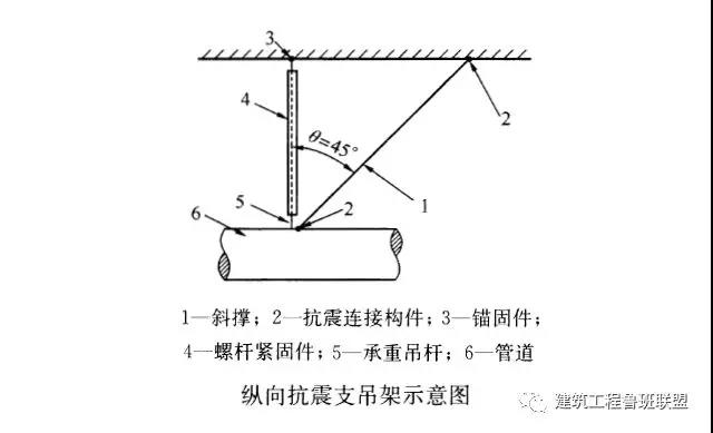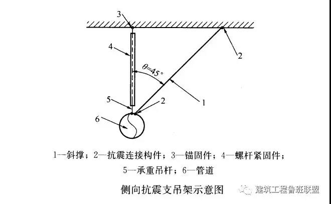 5、第4.1.2.3條規(guī)定需要設(shè)防的室內(nèi)給水、熱水以及消防管道管徑大于或等于DN65的水平管道,當(dāng)其采用吊架、支架或托架固定時,應(yīng)按要求設(shè)置抗震支承。