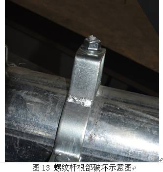 從這次的試驗(yàn)我們可以從中得出最直觀的結(jié)果是,右邊沒(méi)有做抗震加固只有承重支架的水管在地震后斷裂,而左邊做了抗震加固的水管還完好無(wú)損。特別說(shuō)明的是,在本試驗(yàn)進(jìn)行之前評(píng)估中心技術(shù)總監(jiān)還說(shuō),重力支撐系統(tǒng)用的16螺紋桿構(gòu)成的承重吊架,這個(gè)吊桿這么粗怎么可能會(huì)振的斷,一定振不斷。結(jié)果做上去之后,一按按鈕,模擬地震波發(fā)生之后,這個(gè)由一根16螺紋桿構(gòu)成的承重吊架震斷了,齊刷刷的被地震所產(chǎn)生的水平地震力及剪切應(yīng)力從吊桿的根部剪斷。