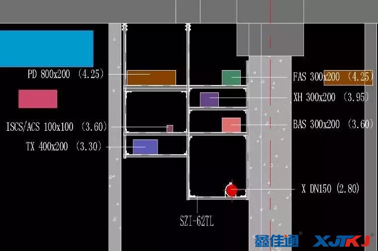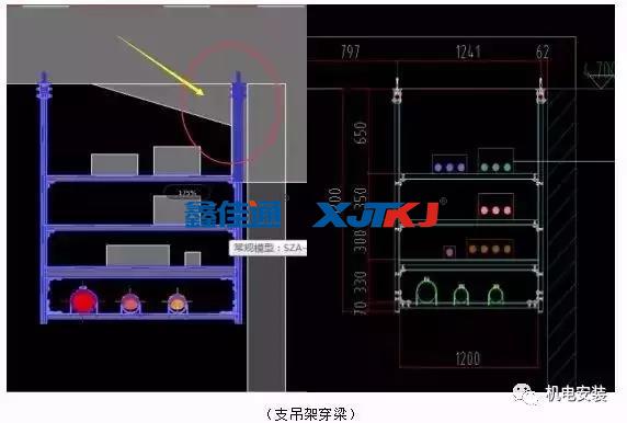 綜合成品支吊架的定位依據(jù)是廠家深化圖中的平面圖,優(yōu)先定位水平位置,再根據(jù)標(biāo)高定位垂直方向。