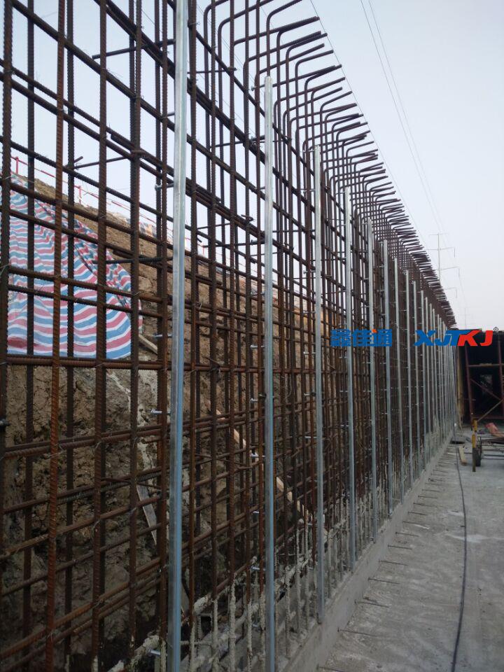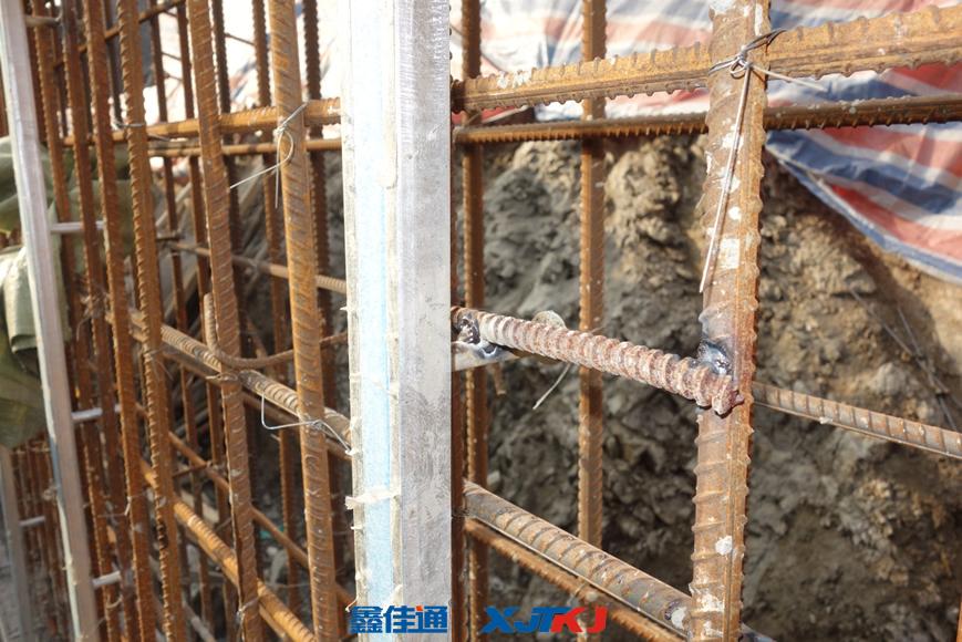 固定錨栓與U型槽背面牢固連接,錨栓之間間距恰好與土建的橫向鋼筋間距一致,保證每個(gè)錨栓可以緊貼鋼筋上面放置。在保證預(yù)埋件的垂直度后,把錨栓焊接在鋼筋上,這樣就可以保證預(yù)埋的支架不發(fā)生位移。如下圖: