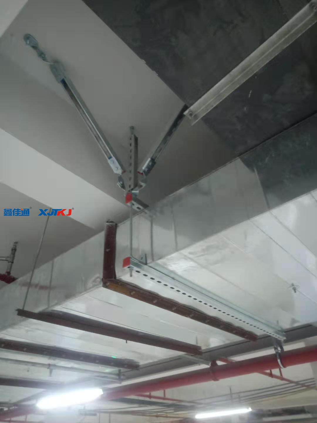 2、間距要求:剛性管道(金屬管道)側(cè)向抗震支吊架間距不得超過12米,縱向抗震支吊架間距不得超過24米;柔性管道(非金屬管道)側(cè)向抗震支吊架間距不得超過6米,縱向抗震支吊架間距不得超過12米。