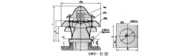 a、軸流式屋頂風(fēng)機(jī):代號為DWT-I型,適用于低壓、大流量的使用場合。同時(shí)根據(jù)用戶需要還可以設(shè)計(jì)成雙向旋轉(zhuǎn)可逆式,具有正反工況等效的特點(diǎn);