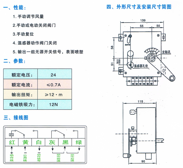 全自動排煙防火閥具有電控開啟、手動開啟、溫控關(guān)閉,手動復(fù)位,電動復(fù)位,輸出開、關(guān)信號和聯(lián)鎖信號等功能。